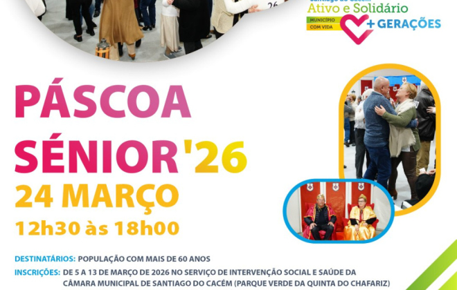 No dia 24 de março, a partir das 12:30, realiza-se o “Baile da Pinha”, no Pavilhão de Feiras e Exposições de Santiago do Cacém. Convívio com almoço e baile dirigido à população sénior do Município.