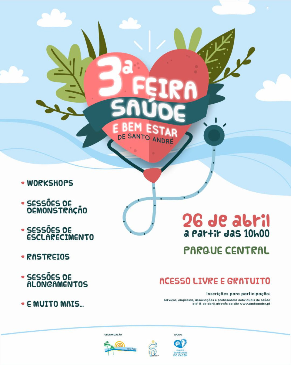 A cidade de Santo André recebe, no próximo dia 26 de abril, a partir das 10h00, a 3.ª edição da Feira da Saúde e Bem-Estar, que terá lugar no Parque Central.