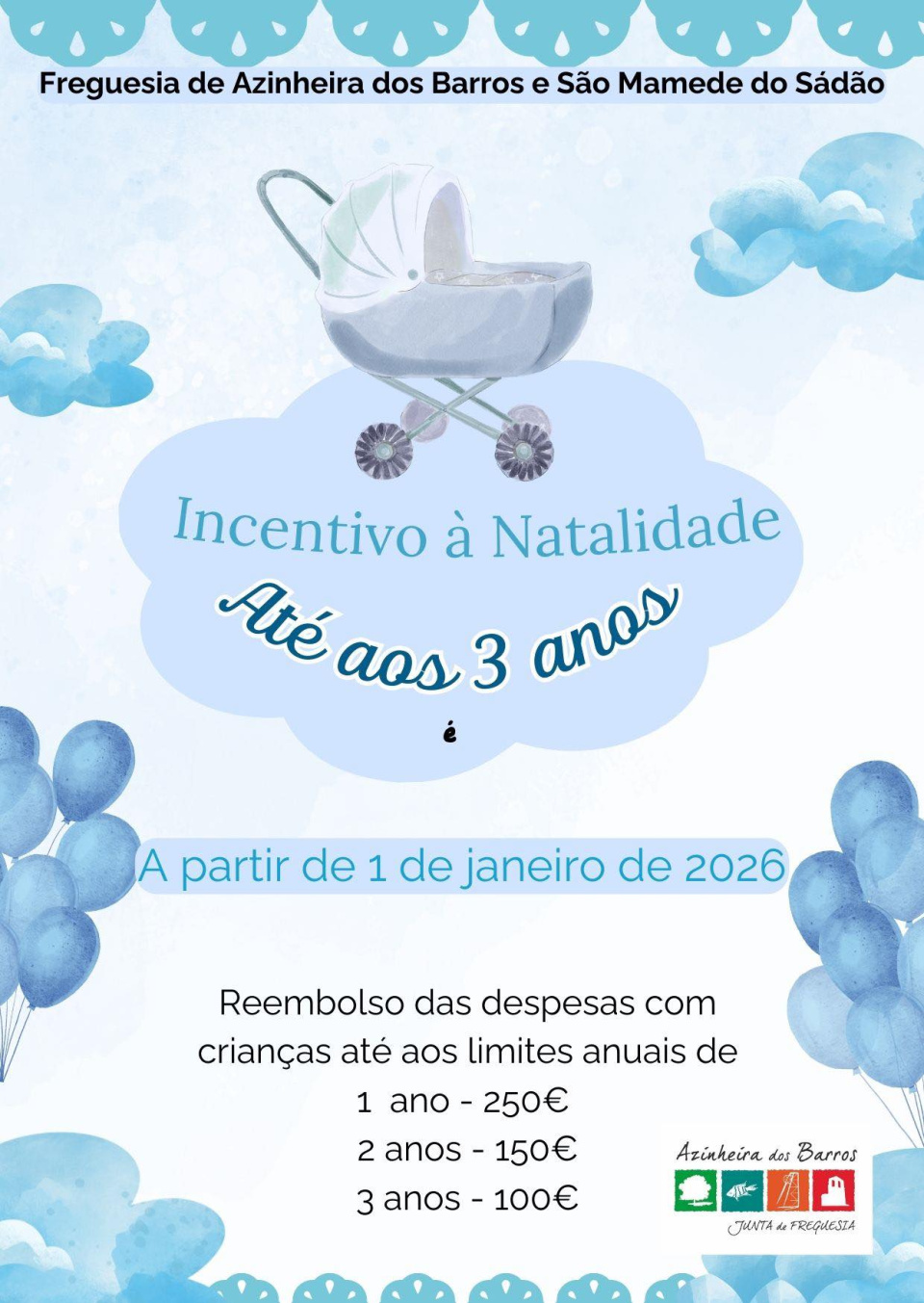 Azinheira de Barros atribui apoios à natalidade até 500 euros por criança