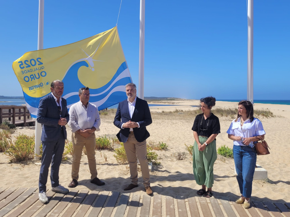A bandeira Qualidade de Ouro 2025, galardão atribuído pela Quercus para atestar a qualidade de das águas balneares, foi hasteada hoje na praia da Costa de Santo André.