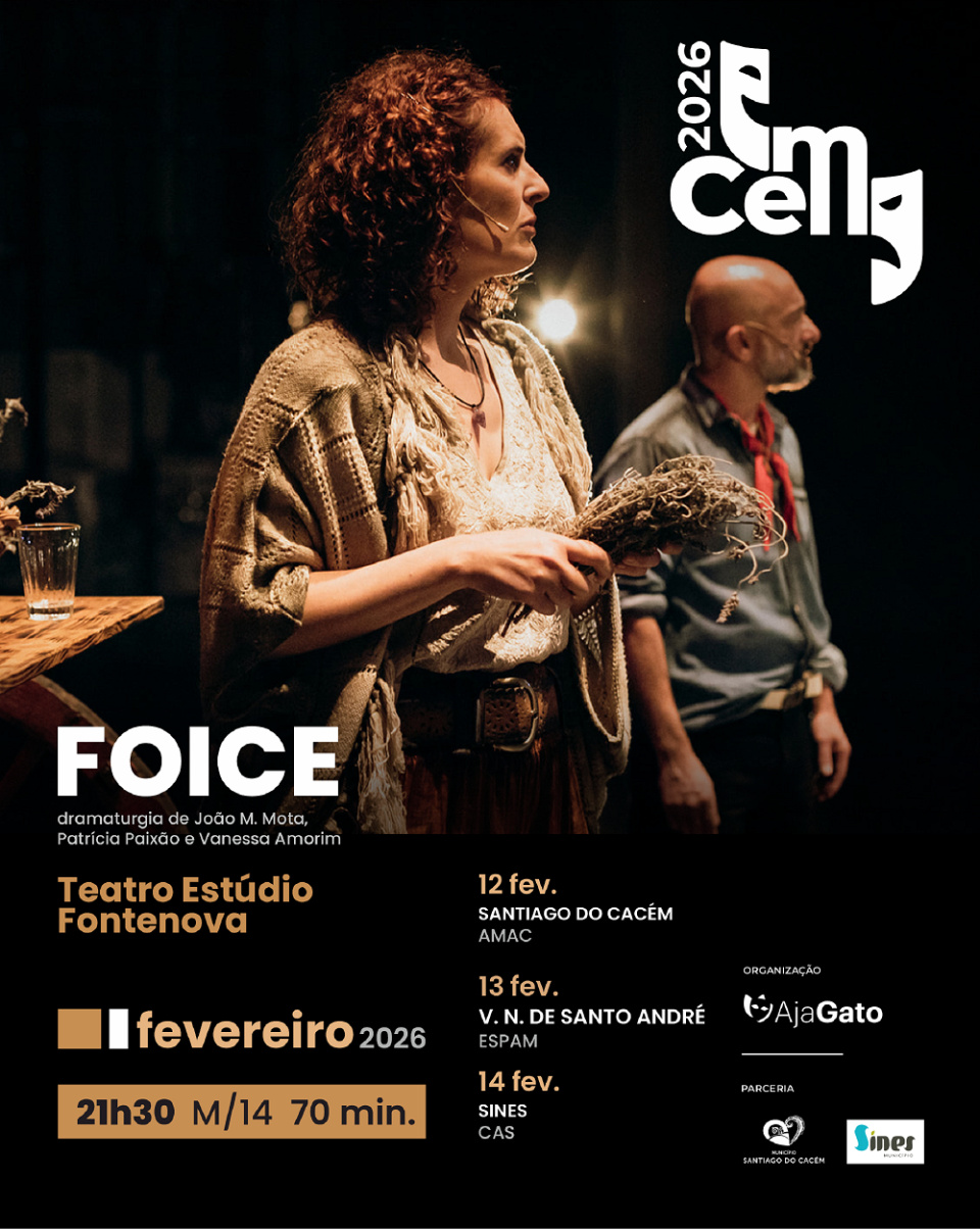 “Foice”, pelo Teatro Estúdio Fontenova, é o primeiro espetáculo da edição de 2026 do EmCena, com sessões no Auditório Municipal António Chainho (quinta-feira), em Santiago do Cacém, e no Auditório Mário Primo, em Vila Nova de Santo André, na sexta-feira.