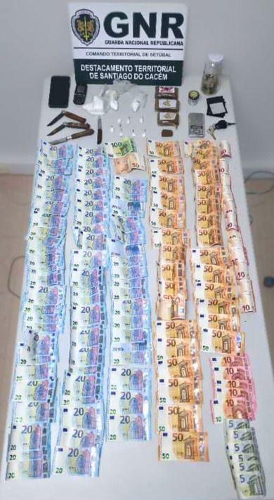 Foi igualmente realizada uma busca domiciliária que culminou na detenção do suspeito e na apreensão de 749,30 doses de cocaína, 588 doses de haxixe e uma viatura utilizada na prática do ilícito criminal.