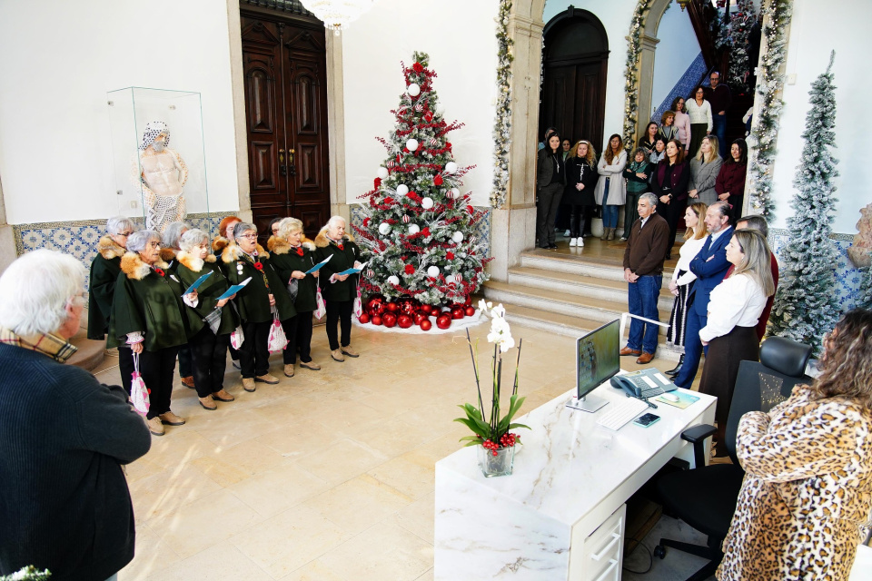 O executivo municipal recebeu o grupo de Vila Nova de Santo André que "com as suas "modas" proporcionou, também a funcionários da autarquia e a alguns cidadãos, que estavam de passagem pelo edifício, um bonito momento".